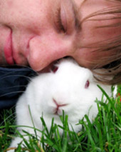 Wee Reclining with outstretched hind legs. Apparently rabbits only do