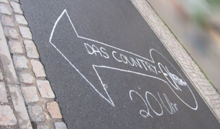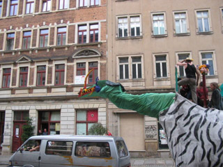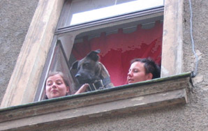 Gero and I played some country and rock tunes in the stairwell of the house. We resorted to streetchalk adverts.