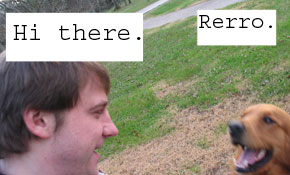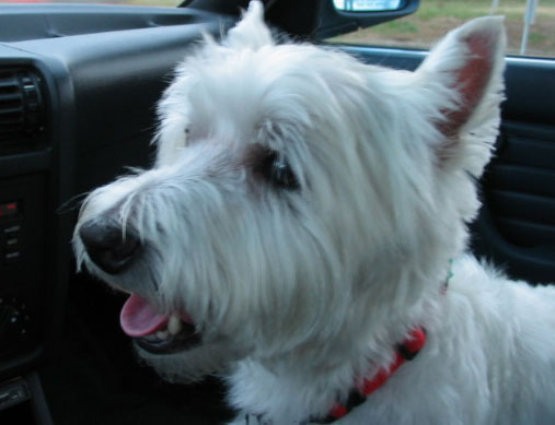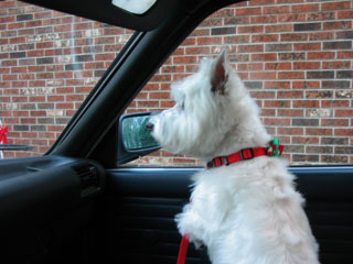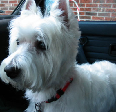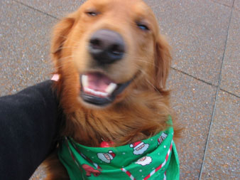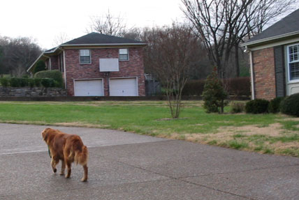afternoon I ran into Boomer, the little red dog next door.